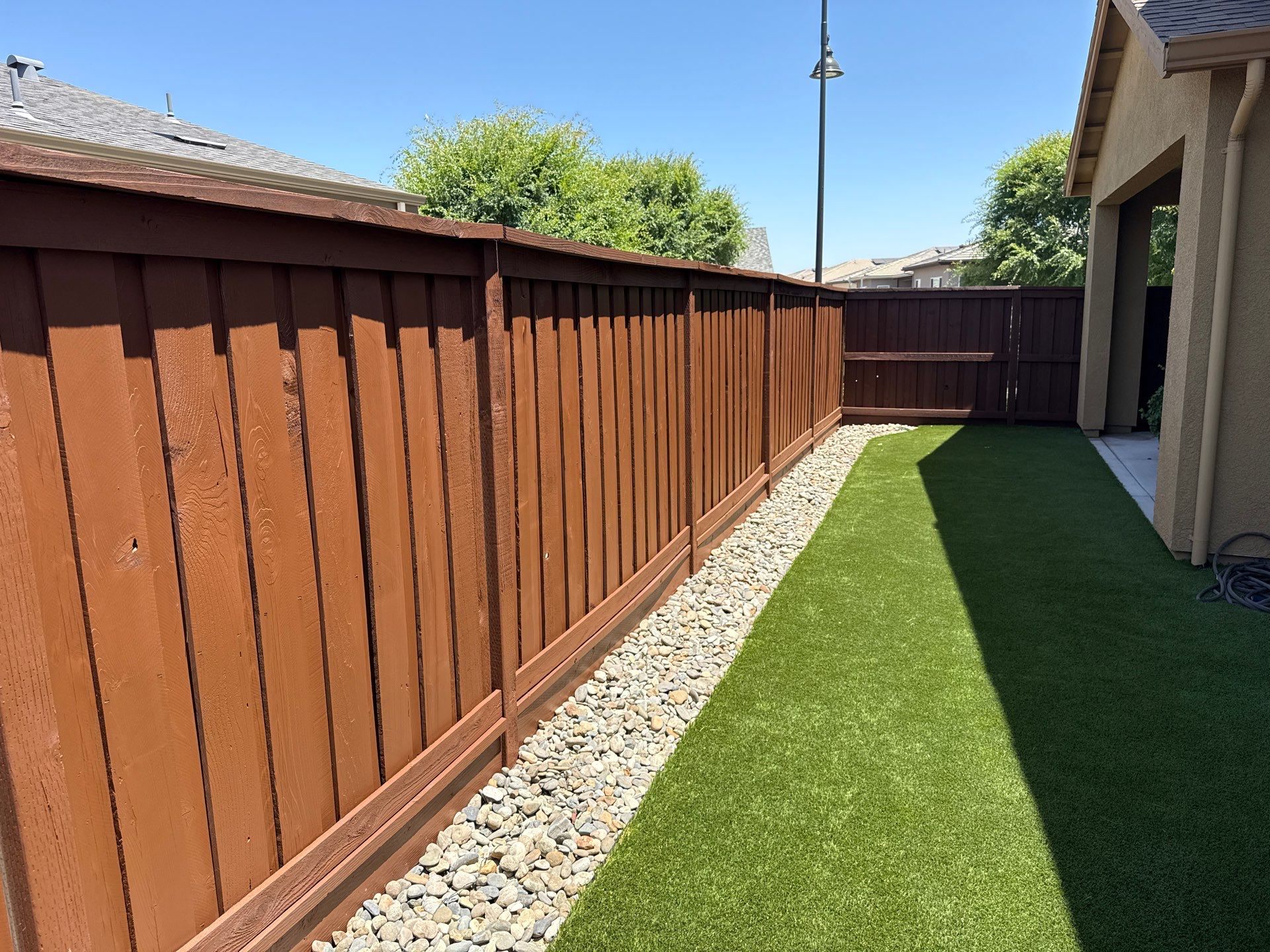 Our deck and fence gallery showcases real projects throughout Stockton, Lodi, and Manteca, from weathered redwood decks restored to beauty to faded fences brought back to life. Notice the even coverage, proper preparation, and lasting finishes.